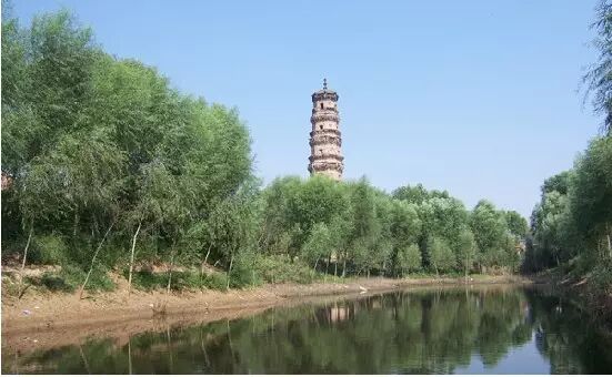 庆林寺塔,位于河北省故城县郑家口西南的饶阳店村东。庆林寺塔系用青砖砌成,坐南朝北,平面为八角形,下为塔座,塔身高六层, 为楼阁式砖塔,总高35.67米,建筑面积165.2平方米。其造型挺拔秀美,砌筑精巧,每层之间砌有双层塔檐。塔顶有一铜葫芦塔刹。一层为三米多高的塔基,二层以上,每层各在东、西、南、北有一个券门。门上有窗,窗上装有菱纹、云纹天莲花纹的窗棂。花饰精美,各不相同。